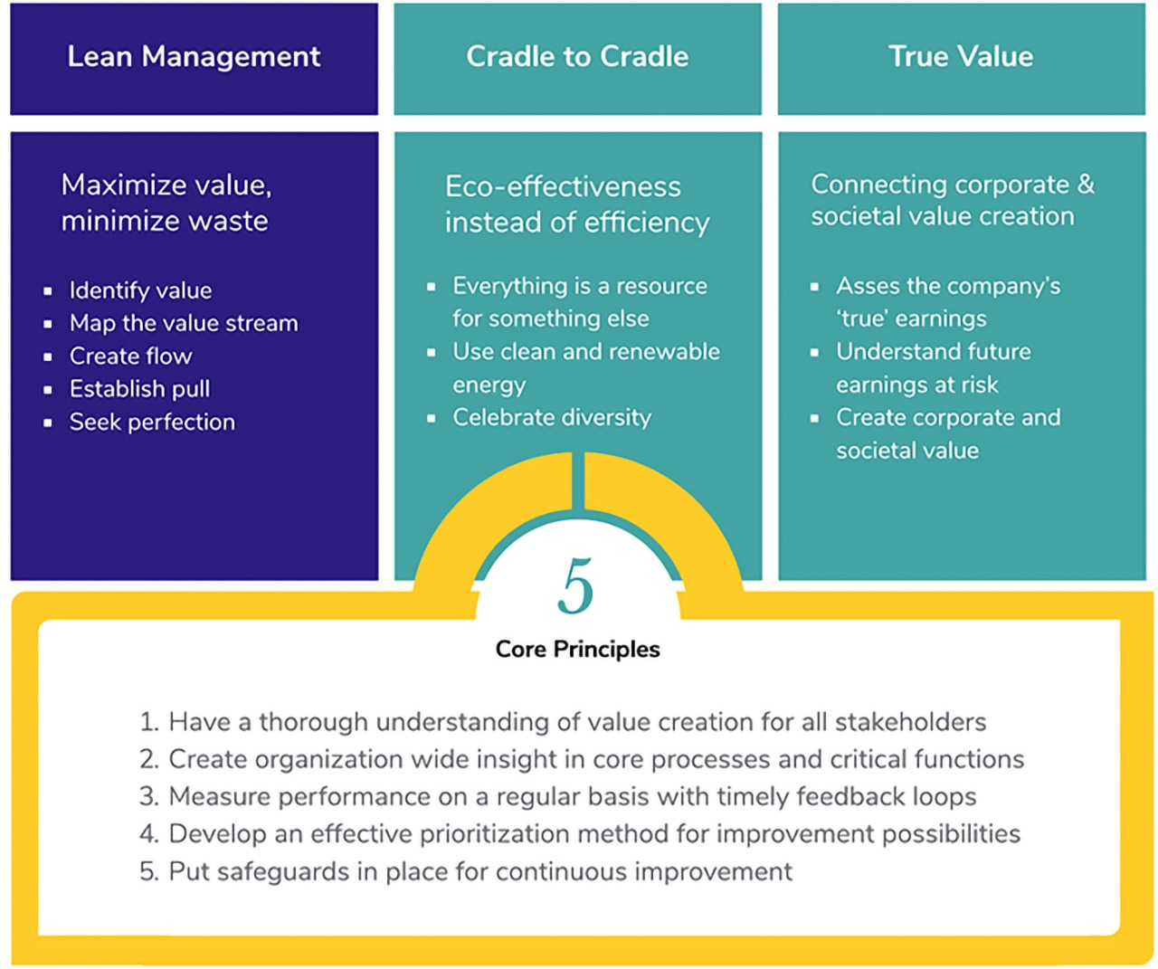 KPMG and EIG have developed the Lean2Cradle® True Value toolkit to create resilient real estate, based on the principles of Lean Management¹, the Cradle to Cradle² philosophy and KPMG’s True Value³ methodology. These approaches have in common that they provide a holistic view on value creation and are most effective when they are translated into a mindset aimed at continuous improvement that runs through the whole organization. When combined they translate to an approach with the circular economy principles at its core.