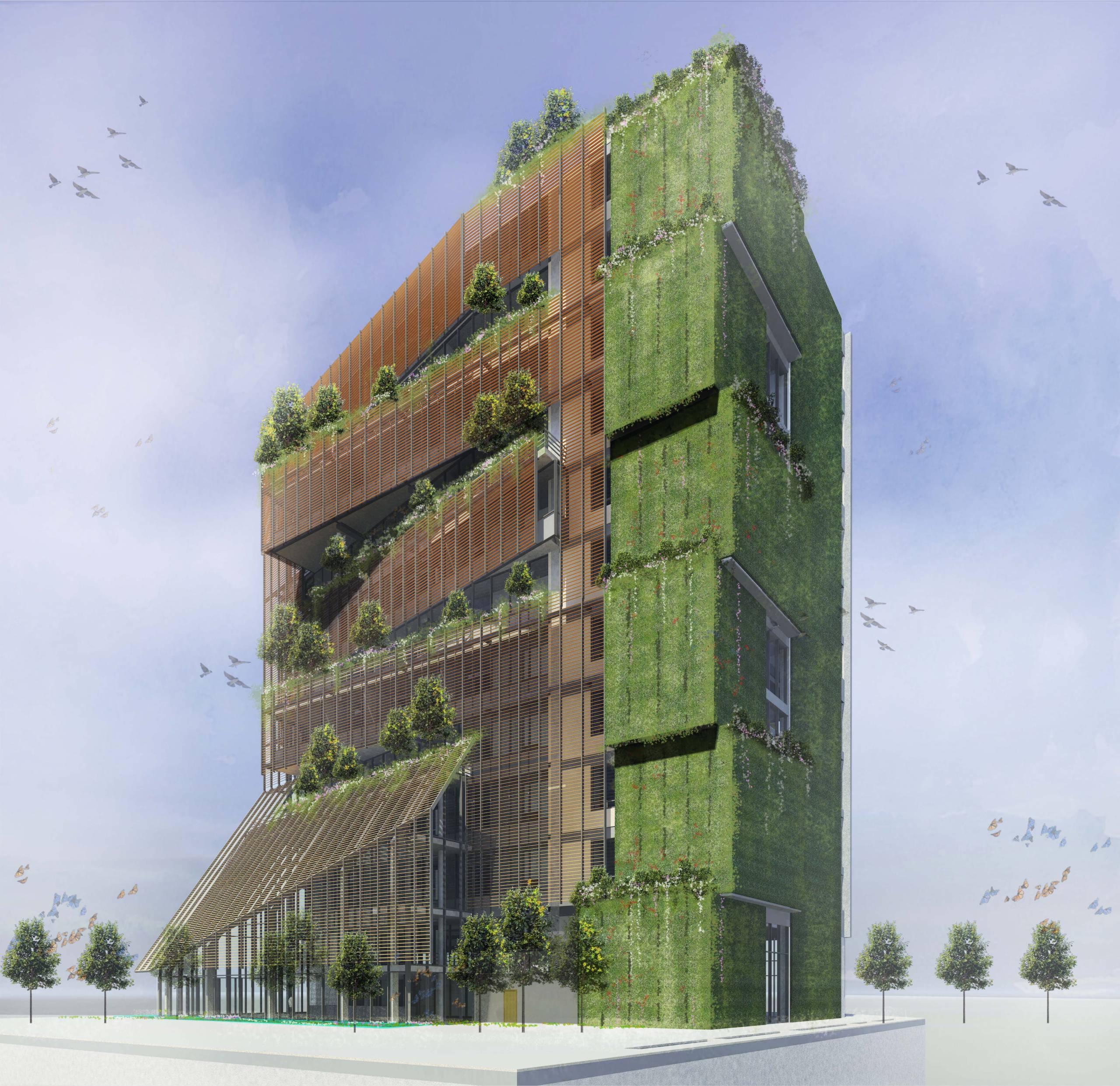 El tándem WMD&P / EIG dio como fruto diseño de gran creatividad y aspiraciones mucho más allá de las habituales en proyectos de construcción verde. Edificios vivos, que actúan como sistemas (metabolismo arquitectónico), mejorando la calidad del aire, el agua, ofreciendo oportunidades de encuentro y descanso a sus ocupantes, con aprovechamiento máximo de la iluminación y ventilación naturales, inspirados en los principios Cradle to Cradle(®.