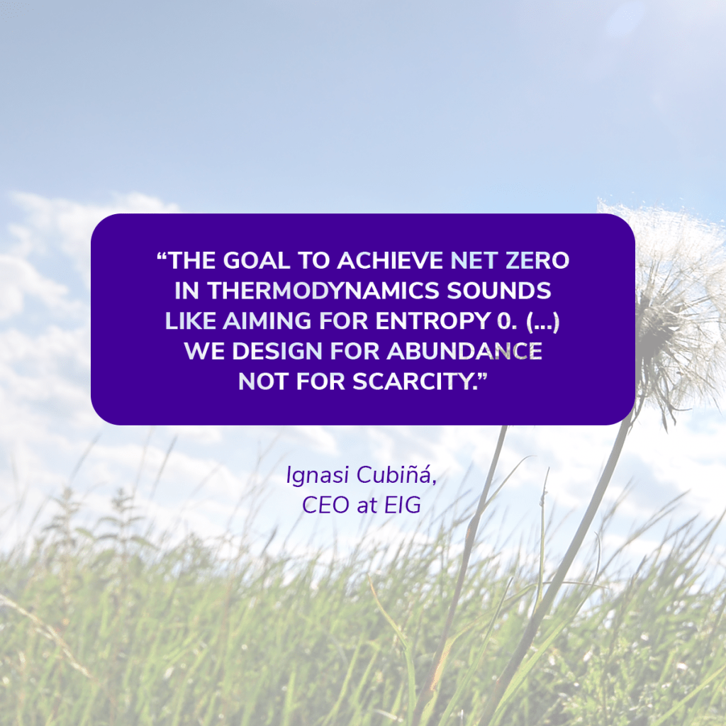 “The goal to achieve Net Zero in thermodynamics sounds like aiming for Entropy 0, which means death, who wants to pursue that goal?”, asks Ignasi Cubiñà, “we design for abundance not for scarcity”.