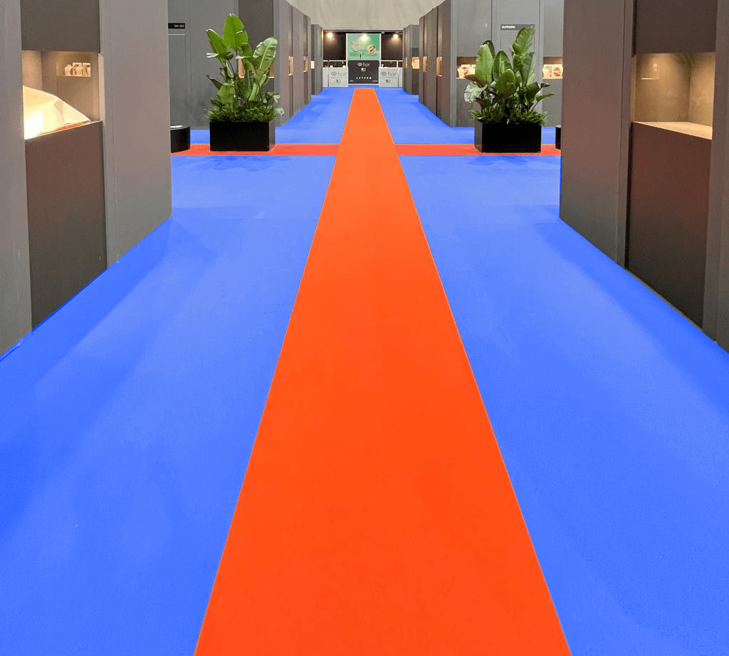 The “Reborn” project by Alma S.p.A. consists of a collection of carpets made from polypropylene, specifically designed for exhibitions, events, and trade fairs. Their design allows for recycling at the end of their life cycle, aligning with circular economy principles.