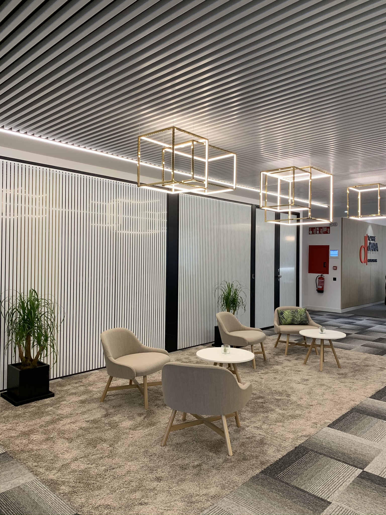 The project consists of multiple work areas adaptable to the needs of each company: private offices, meeting rooms, open space area, training rooms. It also has a terrace, a rest and coffee area, gardens and parking.