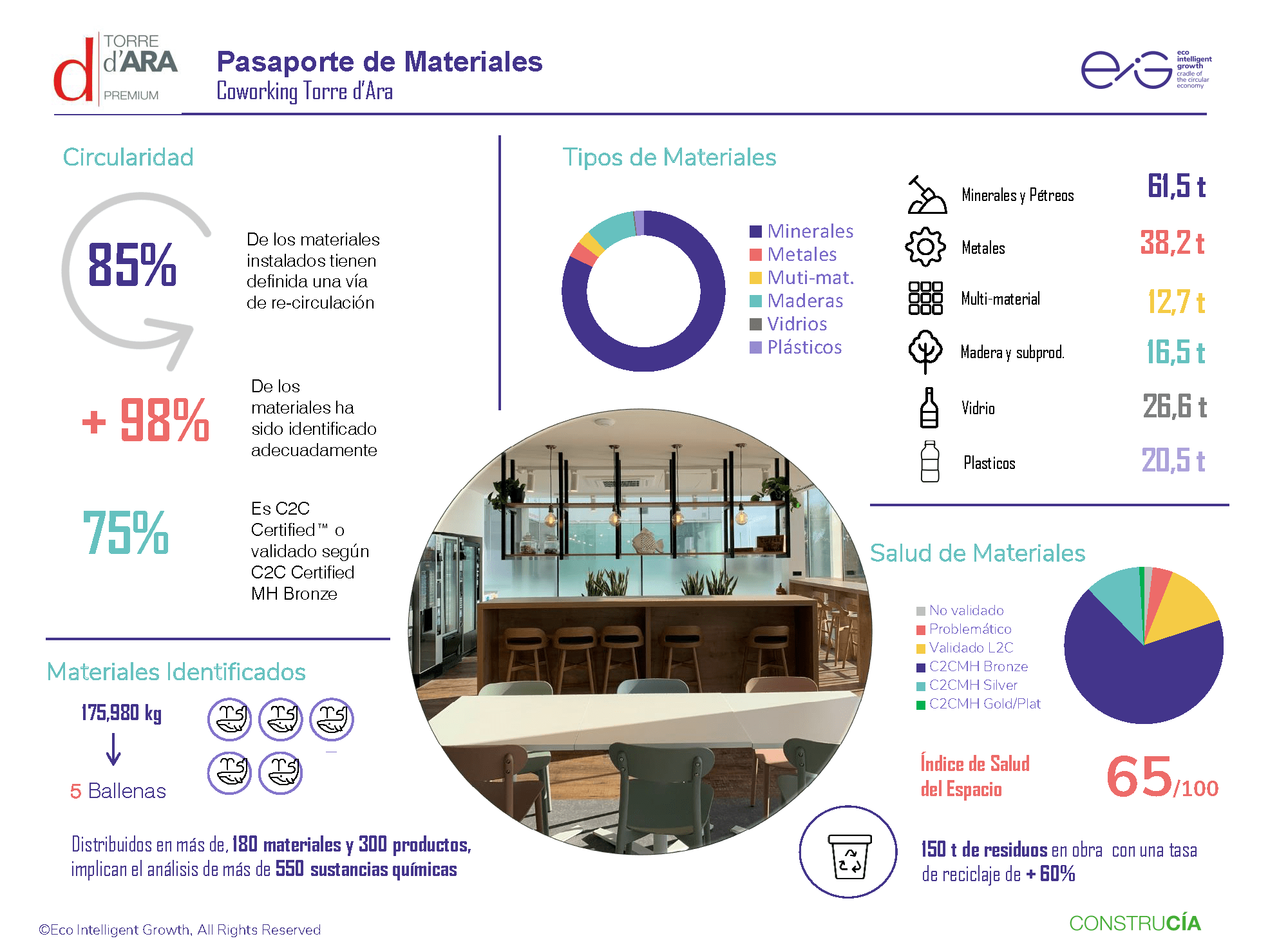 EIG role: Real Value Estate Project Management (coordination from concept design to commissioning), material intelligence, C2C circular advisory, L2C, circular passport.