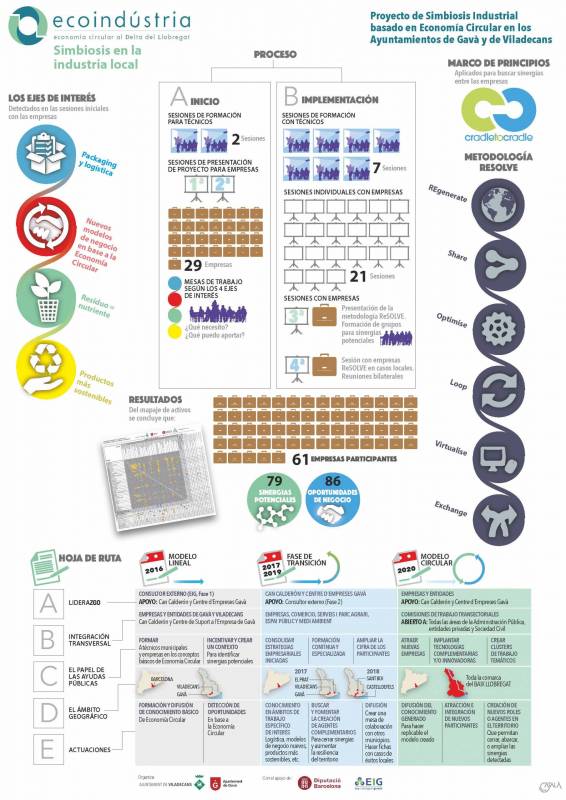 Advice and training to the techincal team of the Municipalities of Baix Llobregat (Gavà, El Prat de Llobregat and Viladecans), in collaboration with the Center of Support to the Company of Gavà, in order to detect industrial symbiosys opportunities between companies of the area.